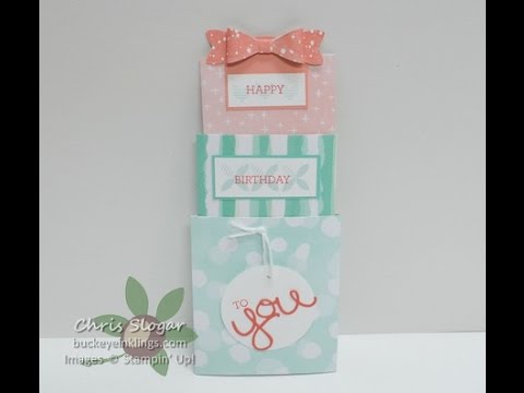 These are Triple Tier Slider cards, and they show off coordinating designer papers just beautifully. This paper is from the Best Year Ever collection which you can have FREE with a $50 product order. I made a video showing the construction of the presents. I hope you will try it!
