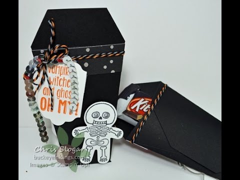 We made these Halloween treats at our team meeting this month. They are CASEd from a project done a couple of years ago by Allison Okamitsu. Each is a pouch for a candy bar, and they are really quick and easy to create.